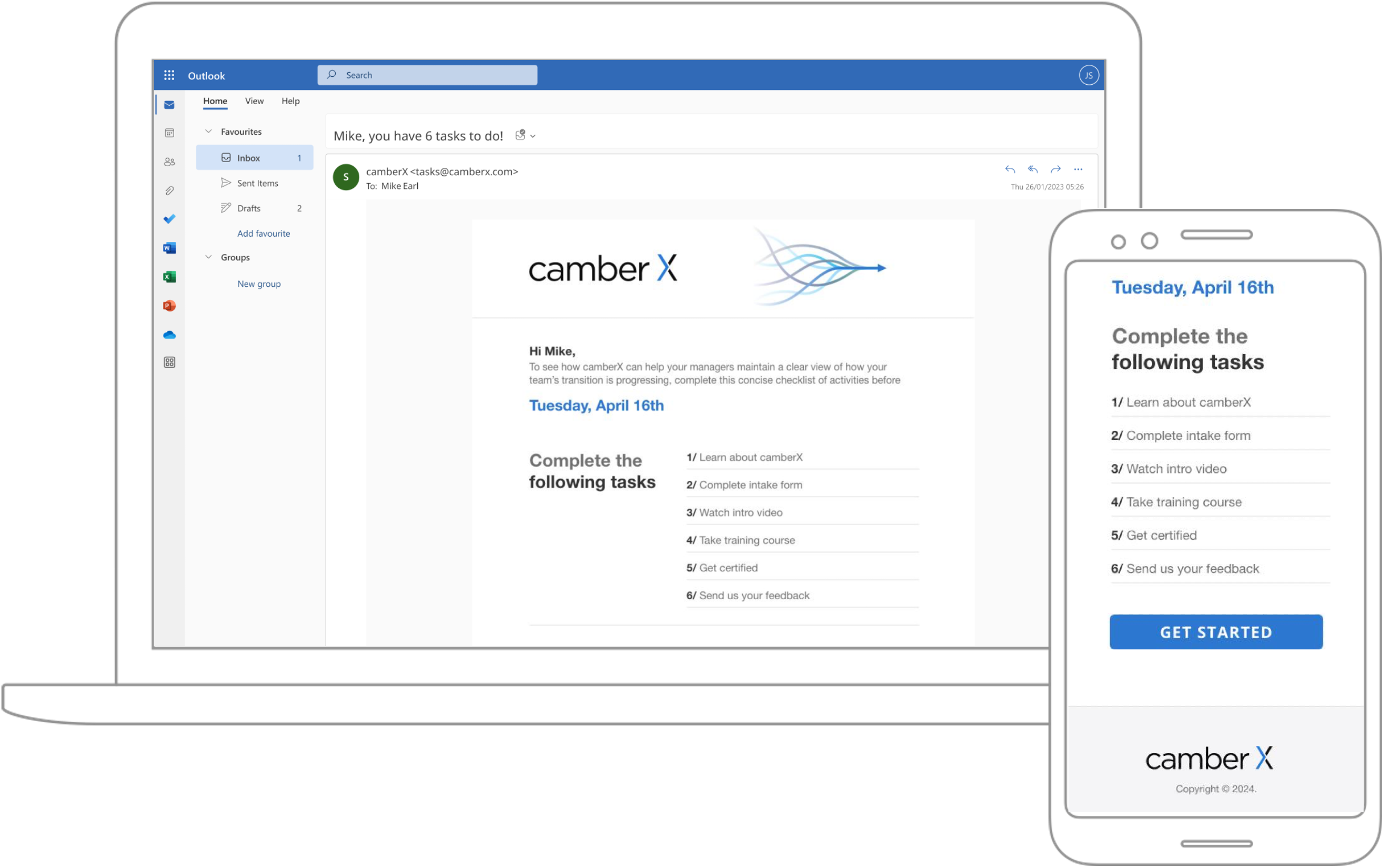 Email, SMS, at their desk or on the go, camberX engages users wherever they are and guides them cleanly through any process.